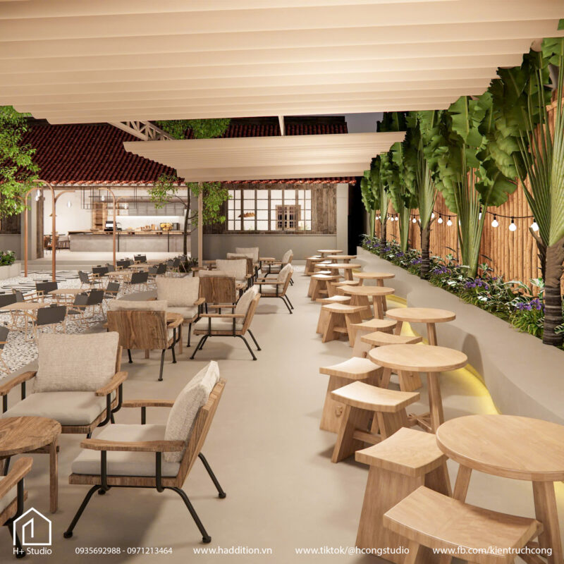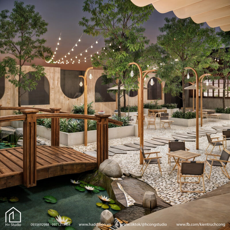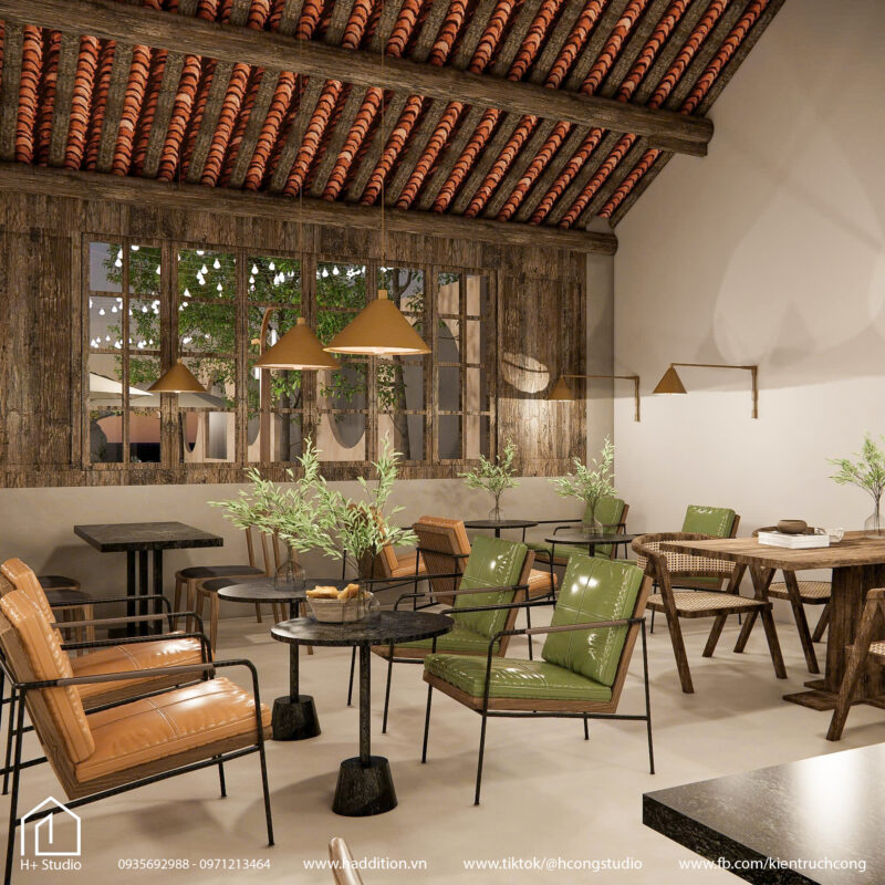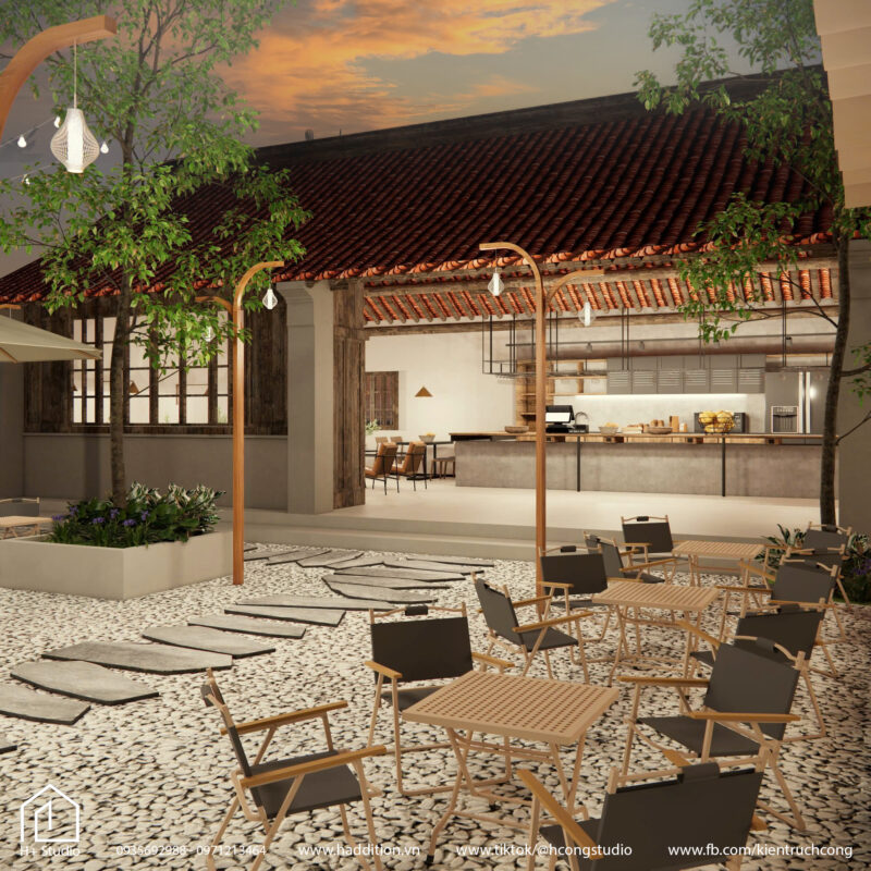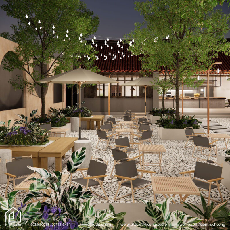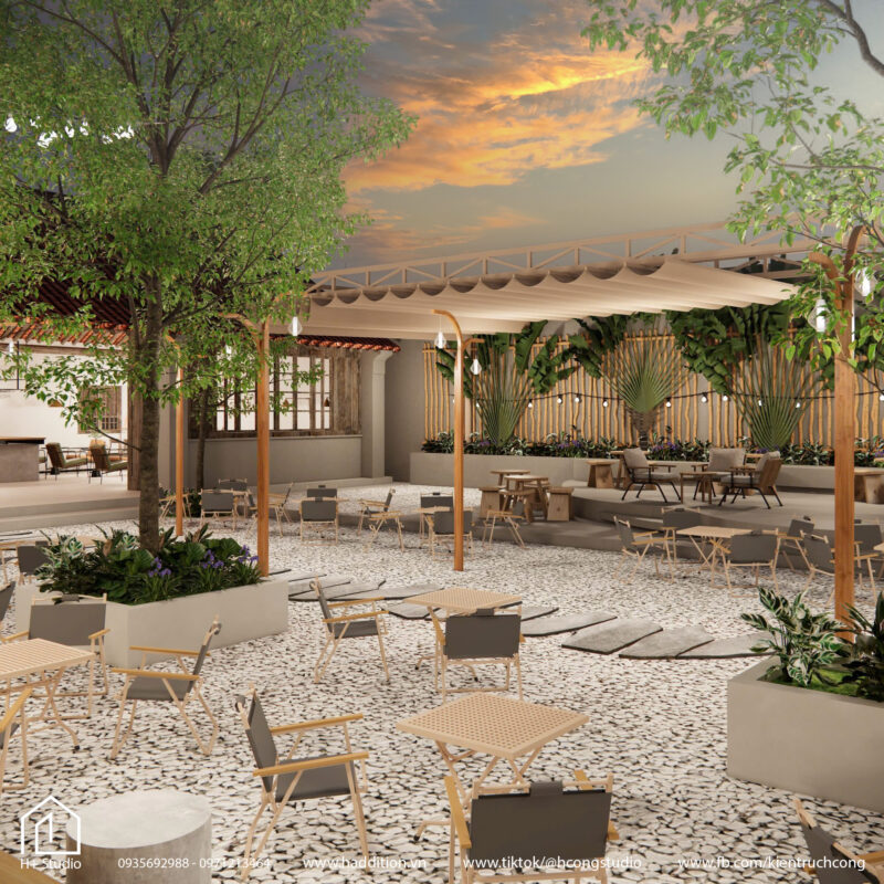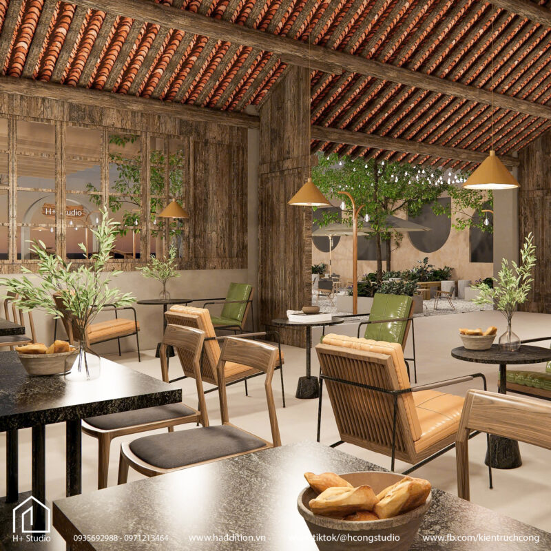Khám phá không gian quán cafe sân vườn độc đáo với kiến trúc nhà ngói 3 gian truyền thống kết hợp hiện đại. Sự kết hợp hoàn hảo giữa mái ngói đỏ ấm cúng, cây xanh tươi mát và nội thất tiện nghi mang lại trải nghiệm thư thái và gần gũi. Đắm mình trong không gian xanh mướt và cảm nhận sự cân bằng hoàn hảo giữa phong cách và thiên nhiên.