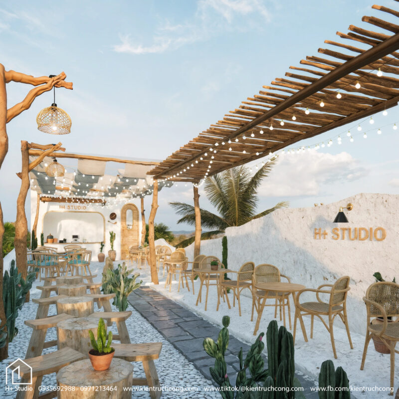Với thiết kế mộc mạc và gần gũi, quán cafe này mang đến cảm giác thư giãn tuyệt đối, nơi bạn có thể tận hưởng tách cà phê thơm ngon giữa khung cảnh xanh mát và kiến trúc đầy tinh tế.