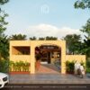 Sử dụng mái ngói, gạch thông gió và tông màu đất ấm để tạo cảm giác thân thuộc