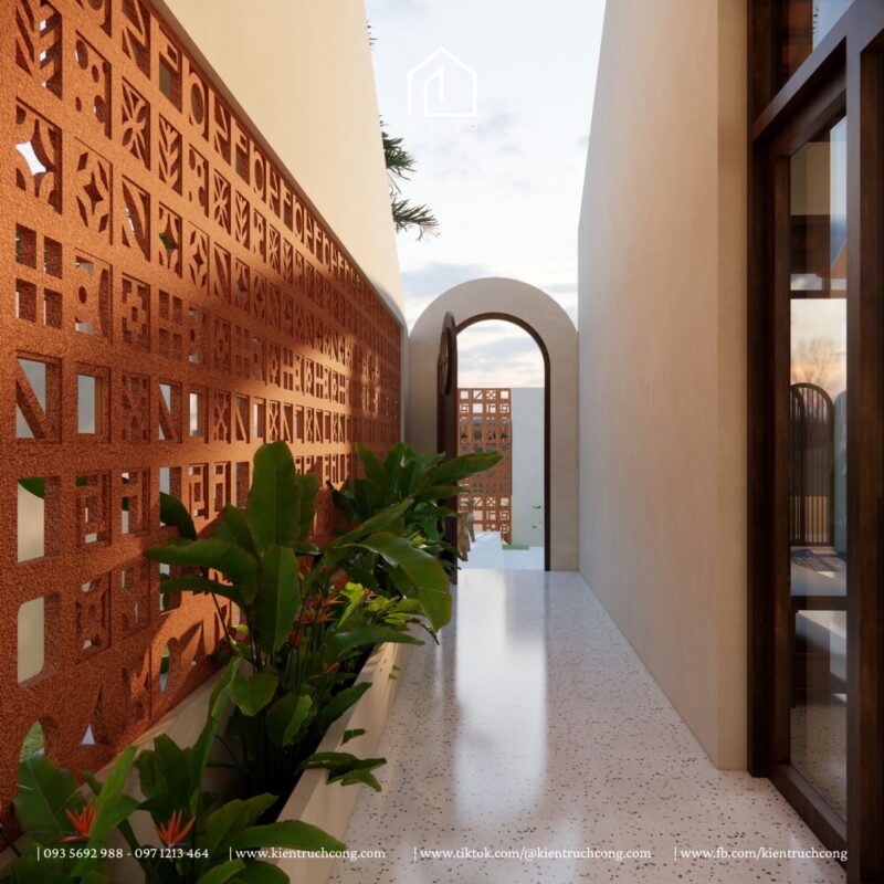 Một công trình mang tinh thần nghỉ dưỡng tại gia – nơi bạn có thể dừng lại giữa nhịp sống vội, sống chậm và tận hưởng từng tia nắng xuyên qua giàn gạch bông gió.