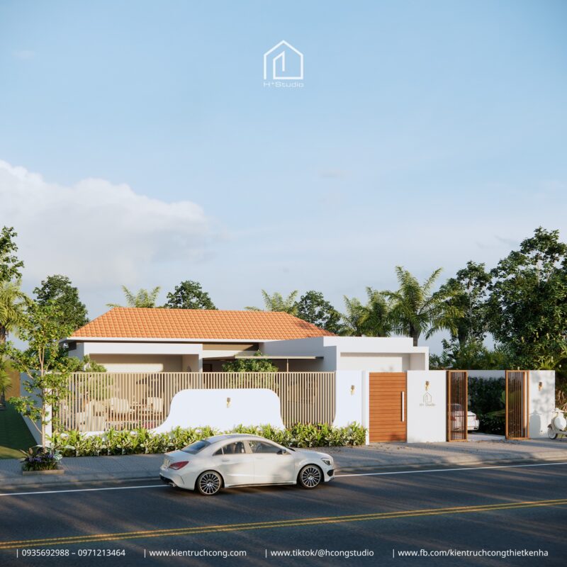 Với gam màu trắng chủ đạo điểm xuyết mái ngói cam ấm áp, ngôi nhà mang đến cảm giác an yên, gần gũi nhưng vẫn toát lên sự sang trọng và tinh tế trong từng đường nét.