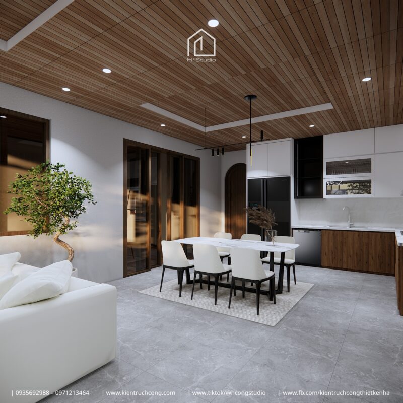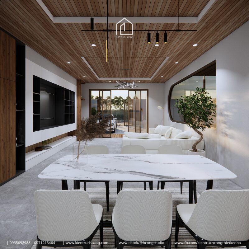 Mỗi không gian đều được mở rộng tối đa ra thiên nhiên – nơi nắng, gió và cây xanh cùng hòa quyện, tạo nên một tổ ấm vừa tiện nghi vừa tràn đầy sức sống.