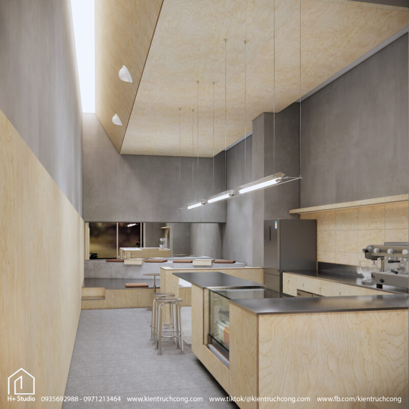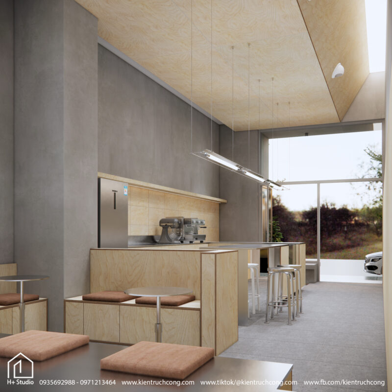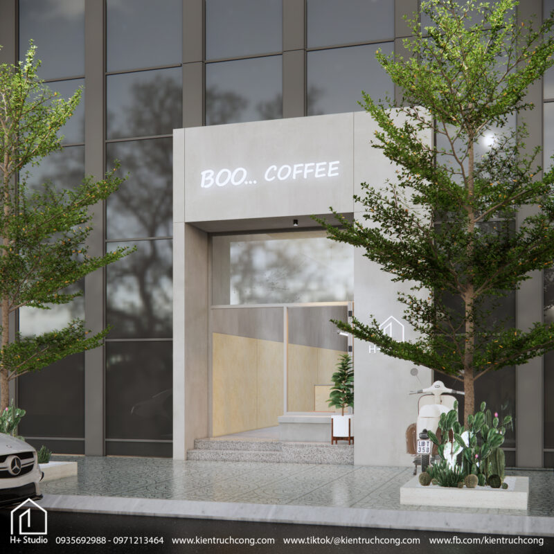 Với mặt tiền xanh mát và thiết kế tối giản, quán mang lại cảm giác thư thái ngay từ ánh nhìn đầu tiên. Cùng H+ Studio, nơi đây không chỉ là một quán cafe, mà còn là góc nhỏ lý tưởng để tận hưởng những phút giây an yên.