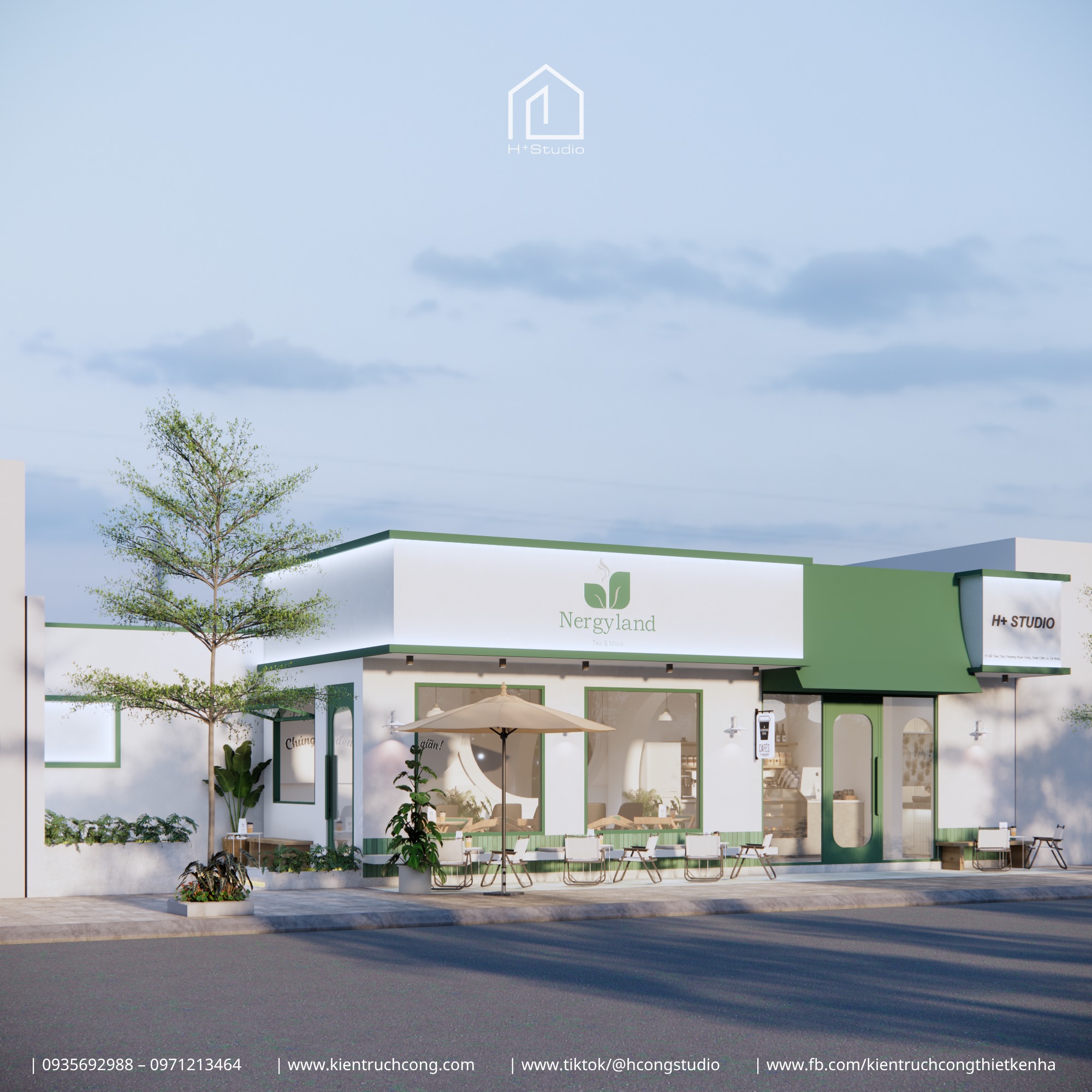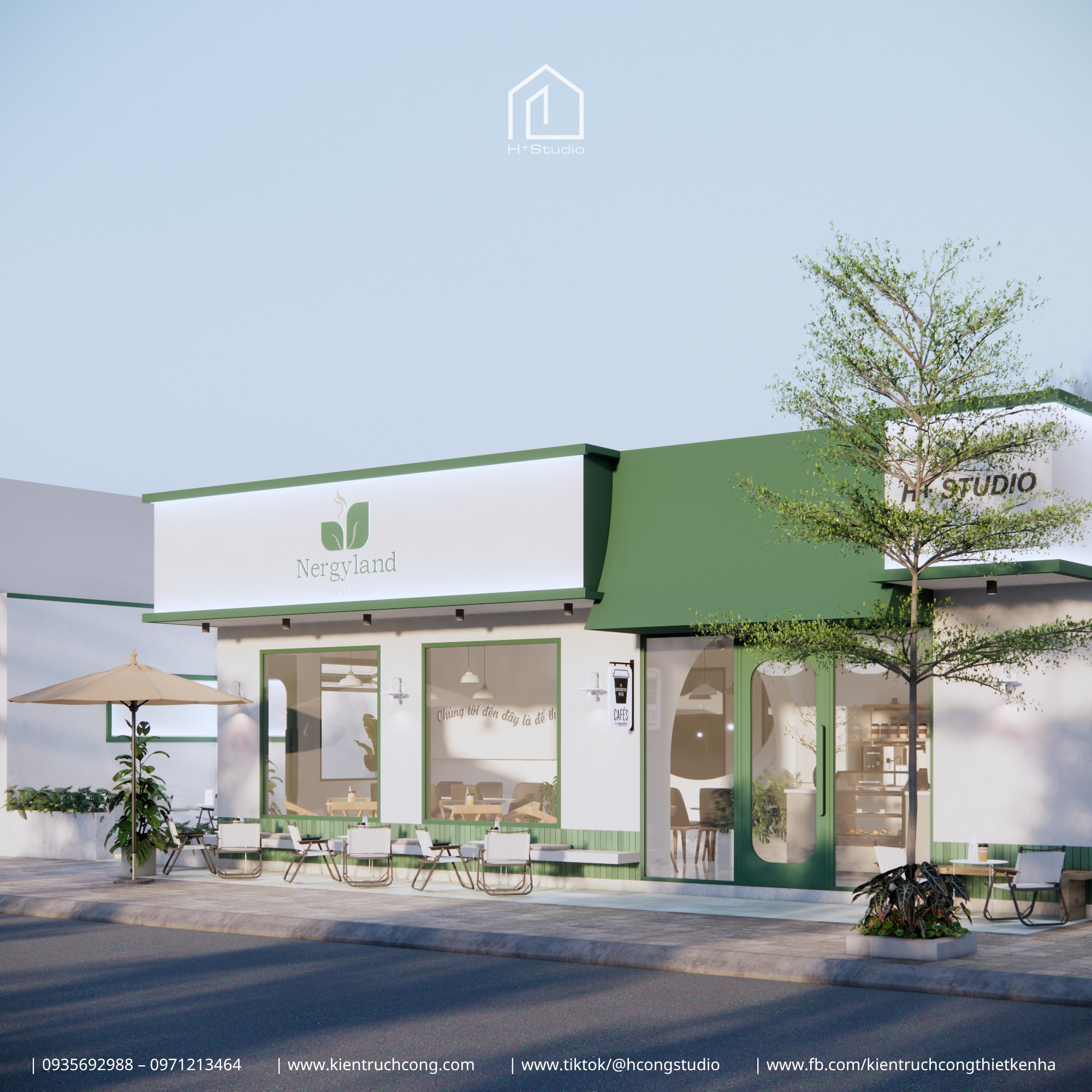 Nergyland Coffee là công trình cải tạo từ dãy phòng trọ cũ, được tổ chức lại thành một quán cafe theo phong cách minimal tropical. Thiết kế tập trung kết nối các không gian rời rạc, tận dụng mặt tiền để bố trí khu ngồi trong nhà và ngoài trời, phù hợp cho mô hình kinh doanh trên diện tích hạn chế.