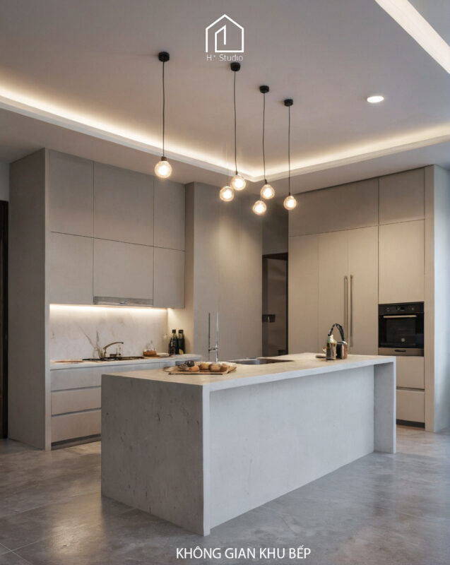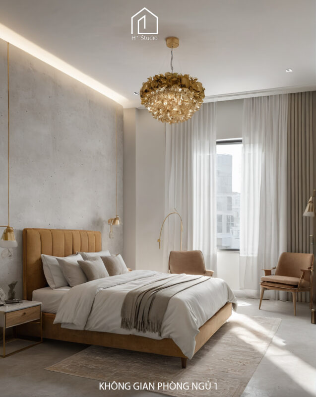 Với diện tích xây dựng 240m2. Tối giản trong đường nét thiết kế, không gian bên trong được bố trí hài hòa, đáp ứng đầy đủ nhu cầu của gia đình. Gam màu trắng và xám chủ đạo, kết hợp với điểm nhấn bê tông, tạo cảm giác ấm cúng và gần gũi.Nội thất tối giản và tinh tế, cùng các sản phẩm trang trí nghệ thuật như đèn trần, làm nổi bật phong cách sống đẳng cấp của gia chủ. Hệ cửa và vách kính rộng mở, mang thiên nhiên vào từng góc nhỏ của căn nhà, mang đến trải nghiệm sống thư giãn và tuyệt vời.Ngôi nhà không chỉ là nơi trú ngụ, mà còn là một tác phẩm nghệ thuật thể hiện cá tính và gu thẩm mỹ của chủ nhân.