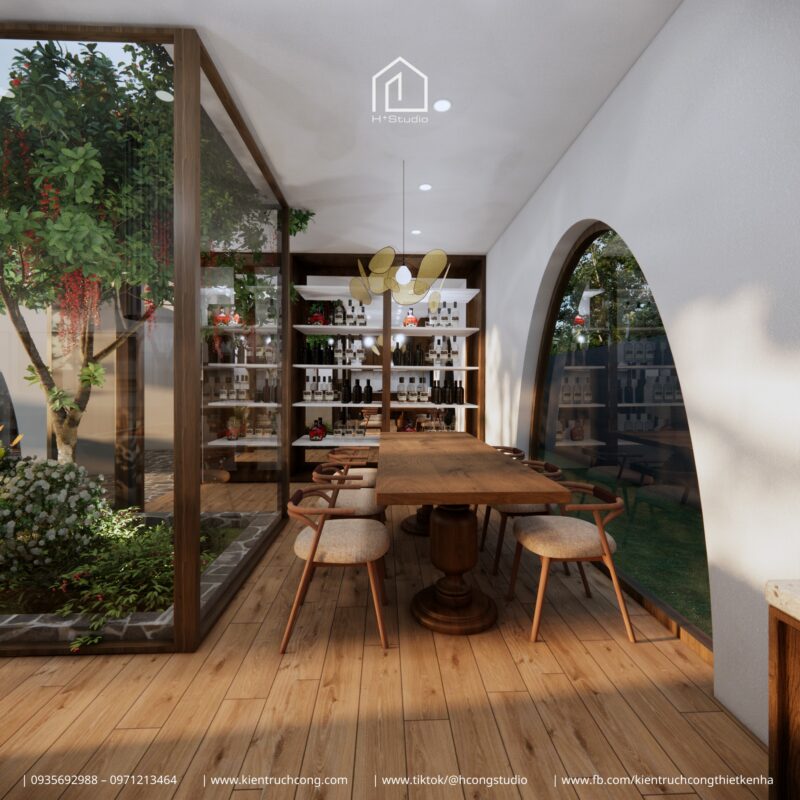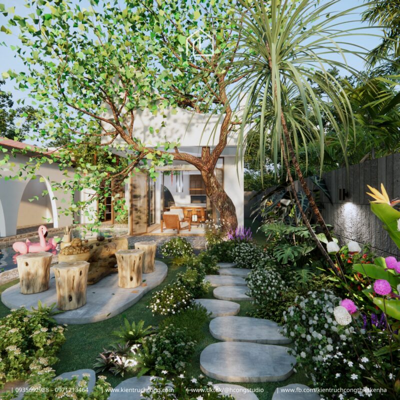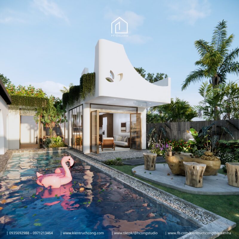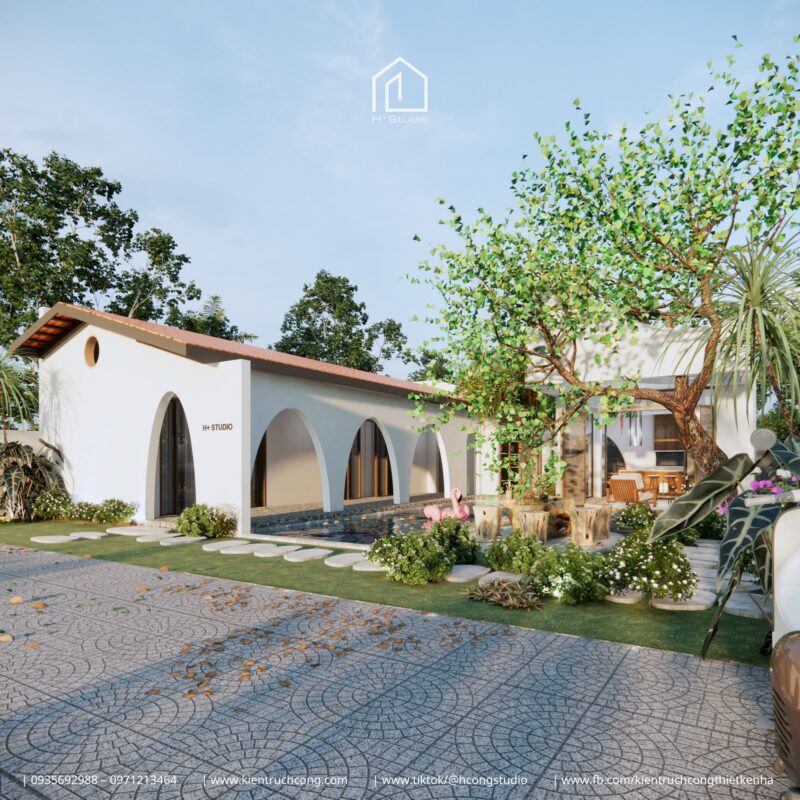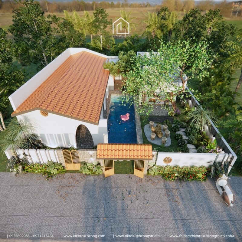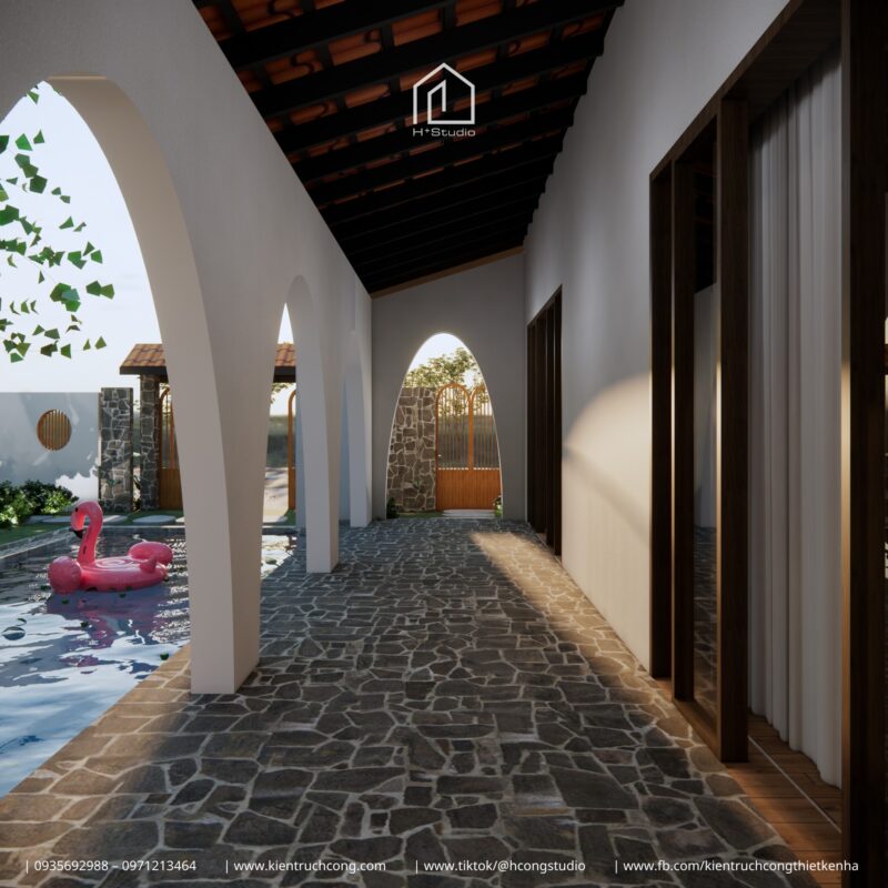Một ngôi nhà nơi mọi chi tiết đều được chăm chút để mang lại cảm giác an yên – thư thái. Đó là sự kết hợp hài hòa giữa kiến trúc vòm mềm mại, vật liệu tự nhiên và khu sân vườn – hồ bơi xanh mát, tạo nên một không gian sống tràn đầy năng lượng nghỉ dưỡng.