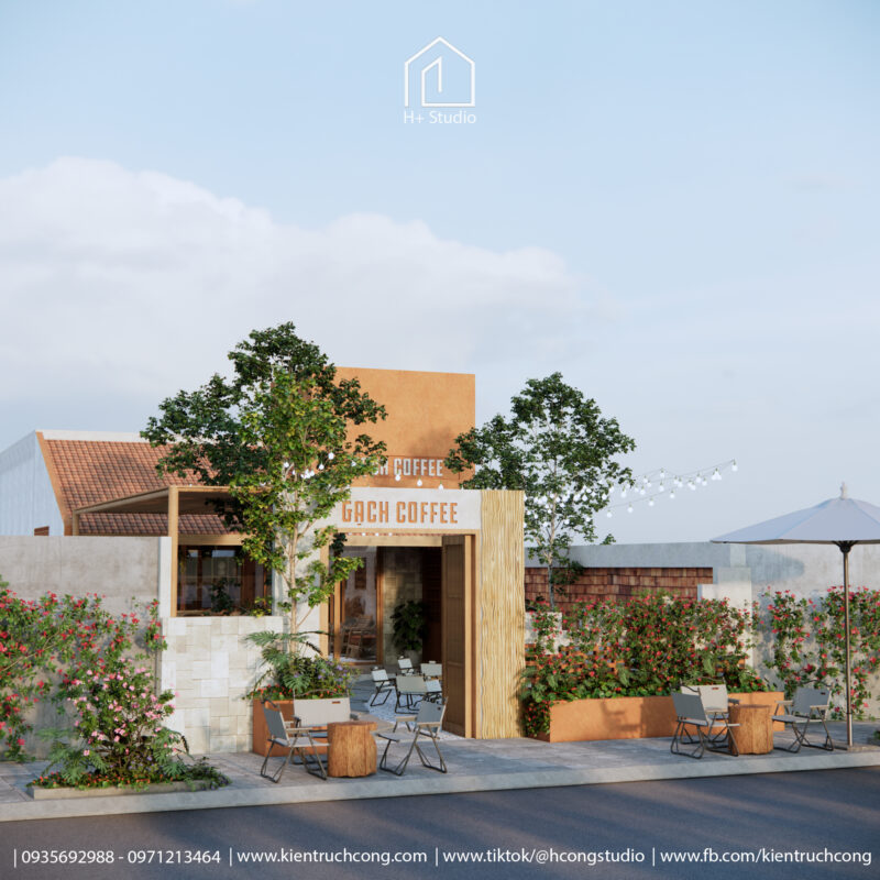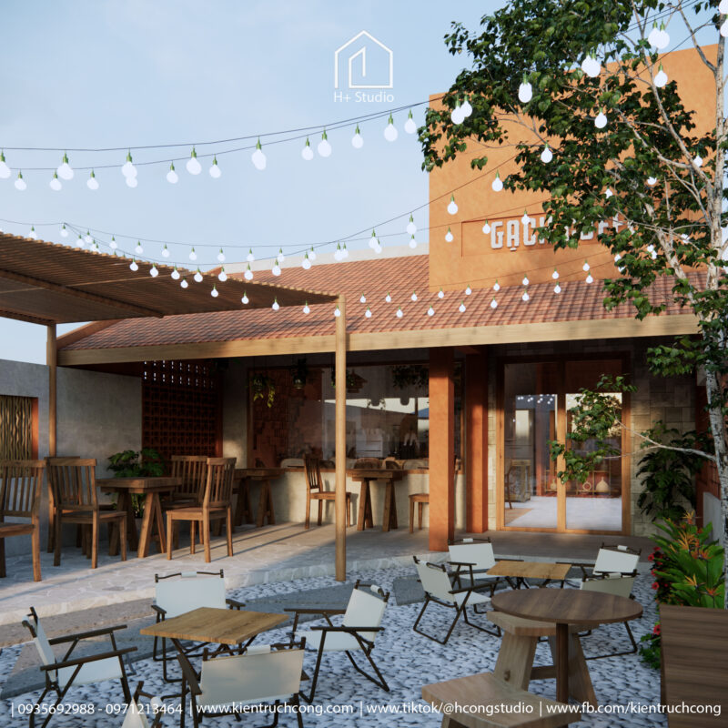 Cây xanh phủ từ cổng vào đến bên trong – giúp quán luôn mát mẻ và tạo cảm giác “trốn phố” giữa lòng đô thị.