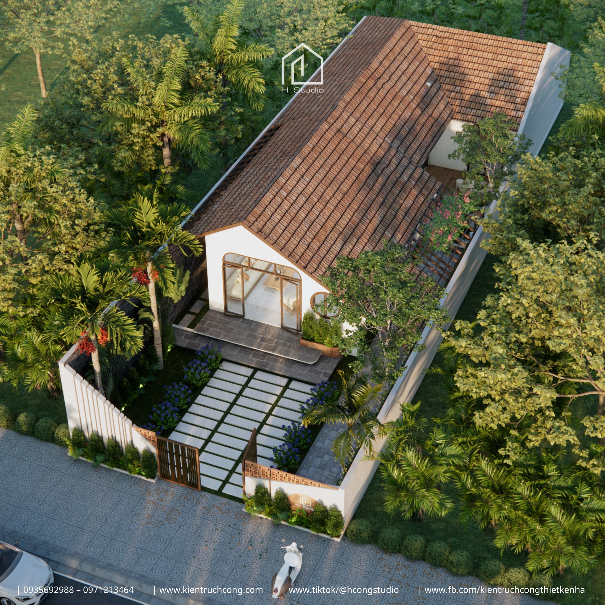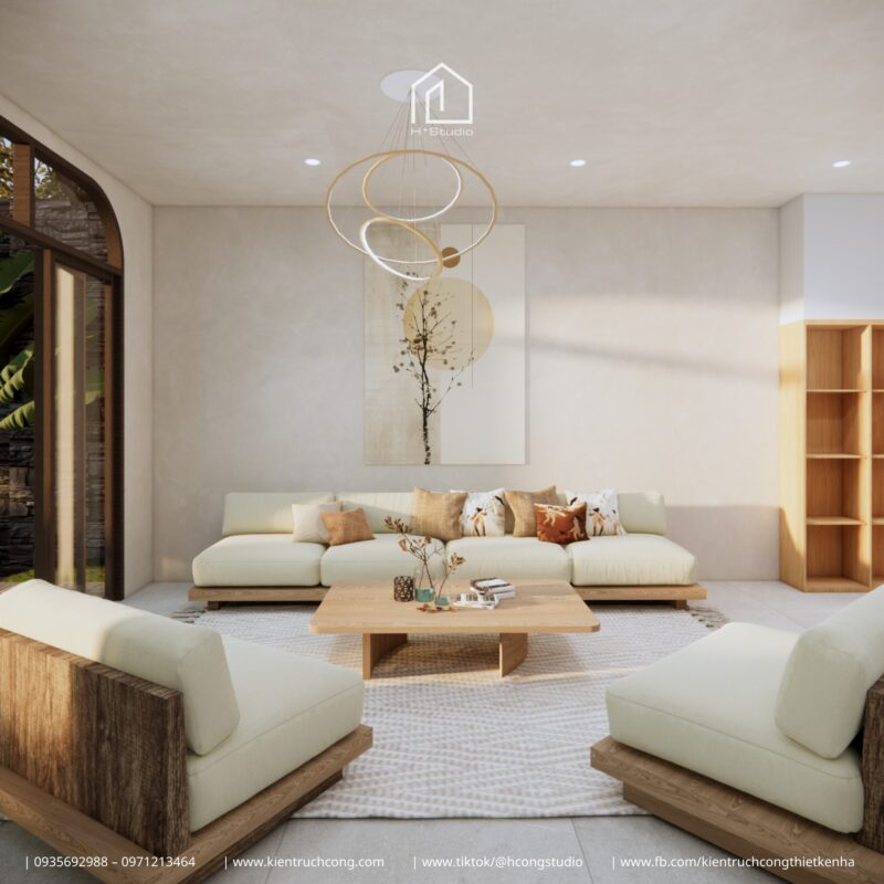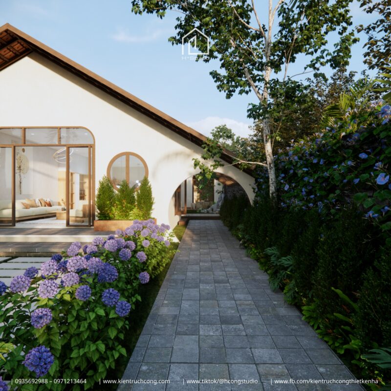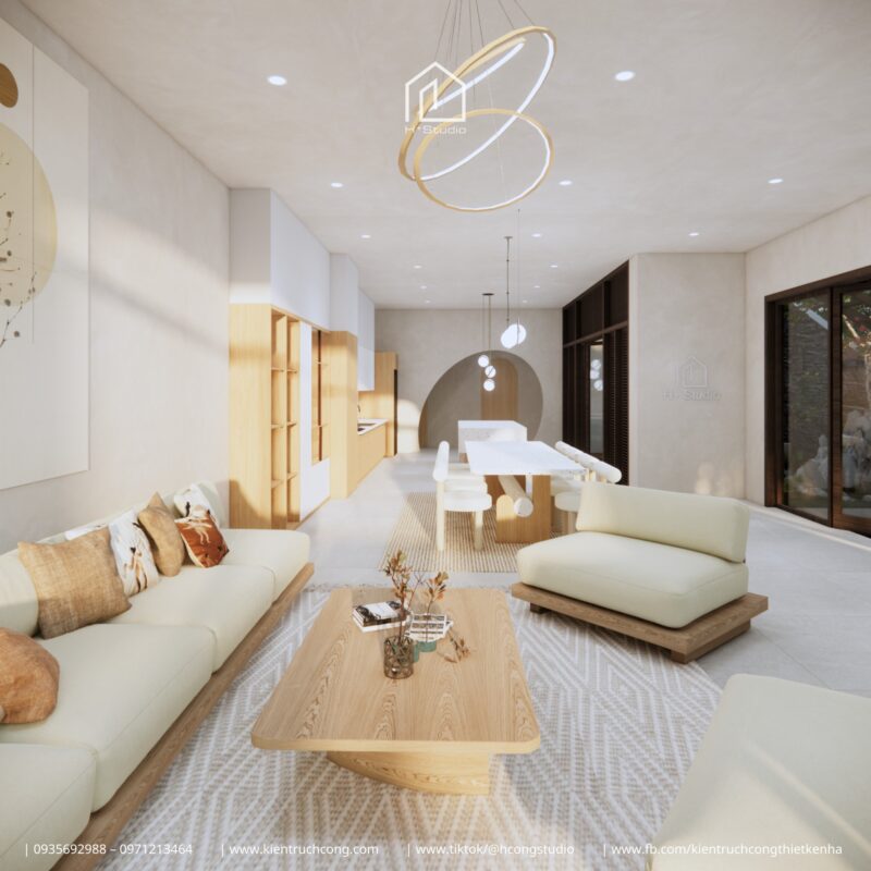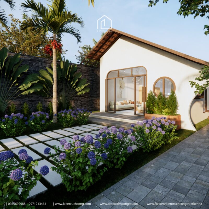 •Công năng: Phòng khách – Bếp – 3 Phòng ngủ – 2 WC – Sân vườn nối liền – Hồ cá & Bàn trà