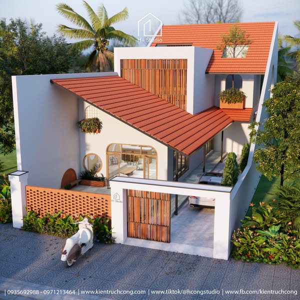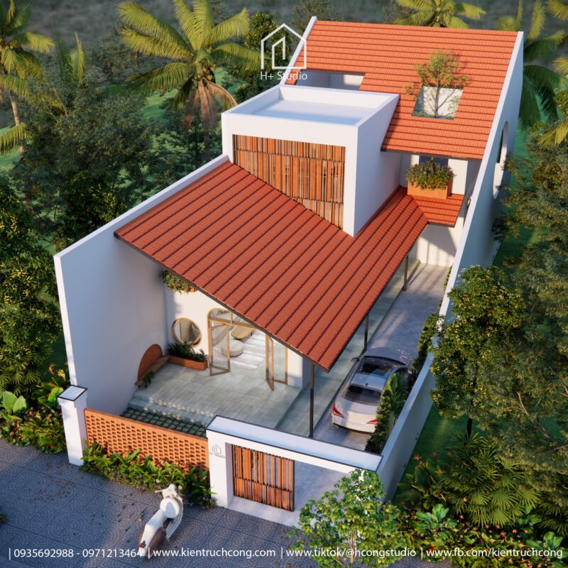 Mộc Lan House là mẫu nhà gác lửng ấn tượng do H Cộng thiết kế & thi công, lấy cảm hứng từ phong cách nhiệt đới mộc mạc, kết hợp mái ngói truyền thống với vật liệu hiện đại. Công trình đặc biệt phù hợp với các gia đình trẻ tại đô thị tỉnh – vừa tiết kiệm chi phí xây dựng vừa tối ưu công năng và thẩm mỹ.”