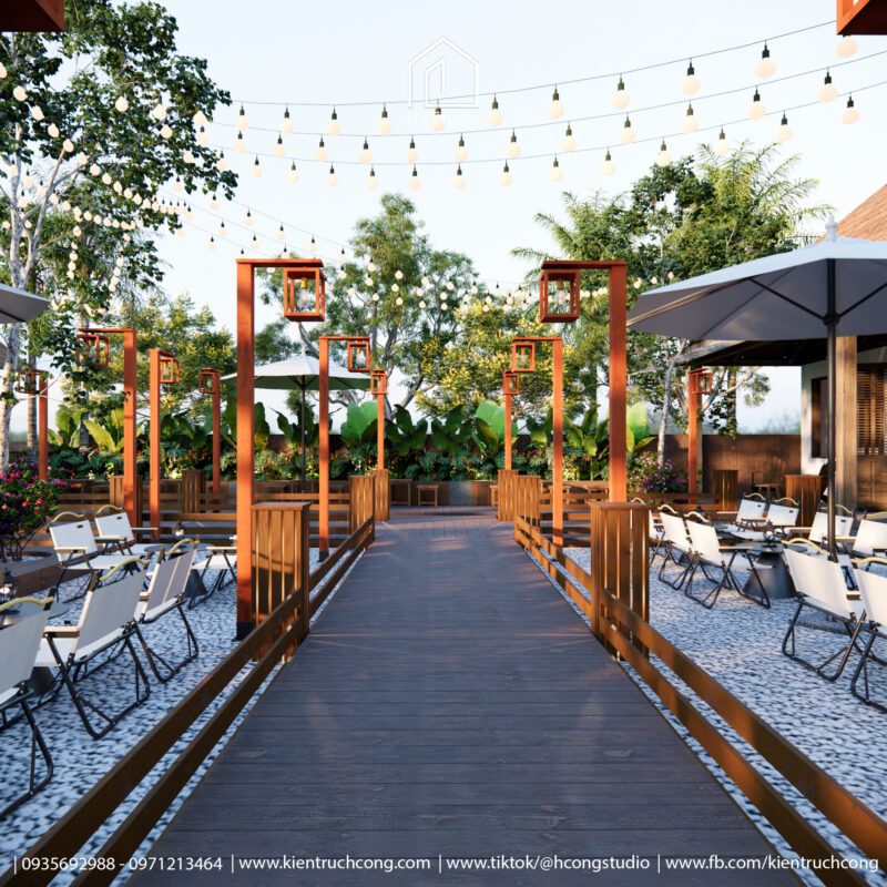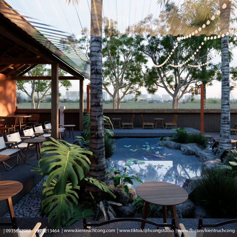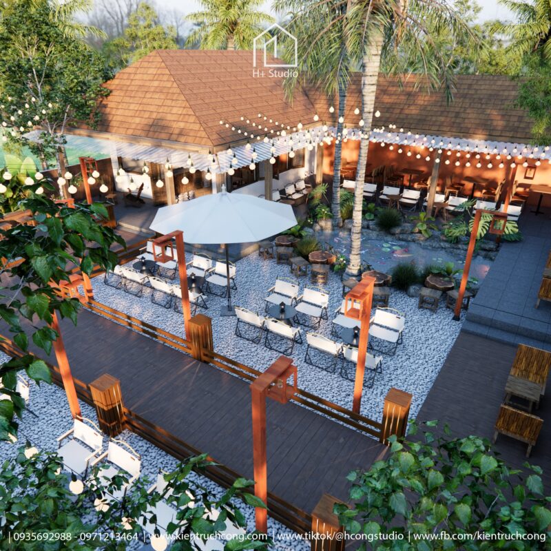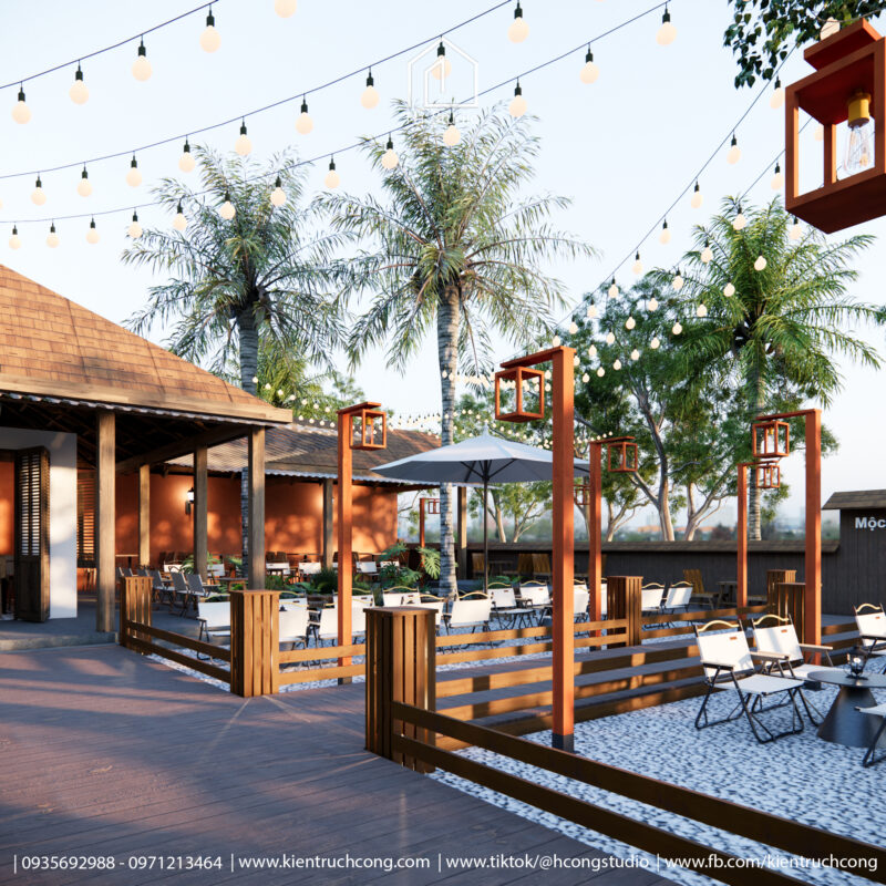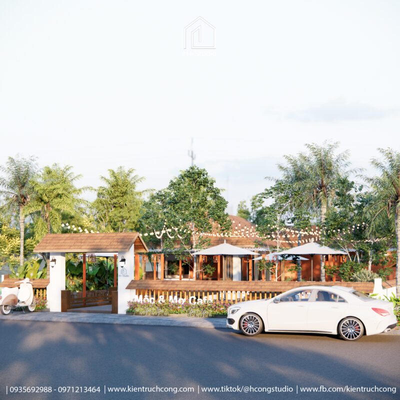 Mộng Coffee là công trình cafe sân vườn được H Cộng thiết kế và thi công tại Tiền Giang – nơi khí hậu nhiệt đới nắng ấm quanh năm, rất thích hợp cho những không gian mở nhiều cây xanh. Với cảm hứng từ kiến trúc nhà vườn Nam Bộ kết hợp lối bài trí đương đại, quán mang đến trải nghiệm gần gũi nhưng không kém phần tinh tế và chỉn chu.