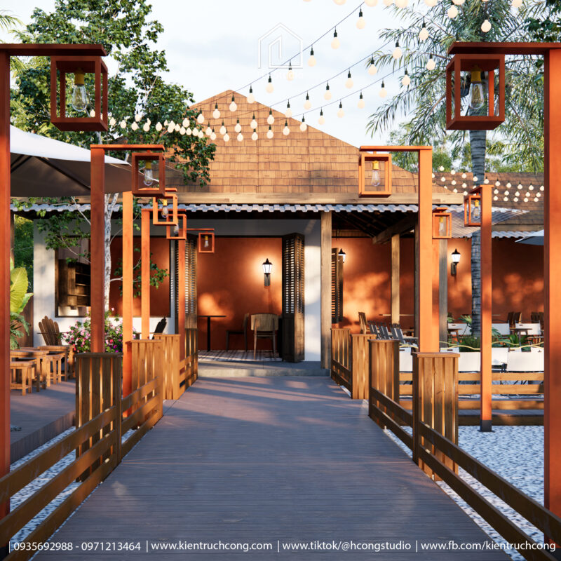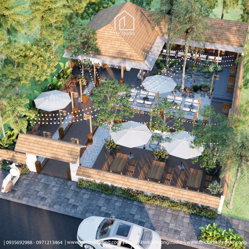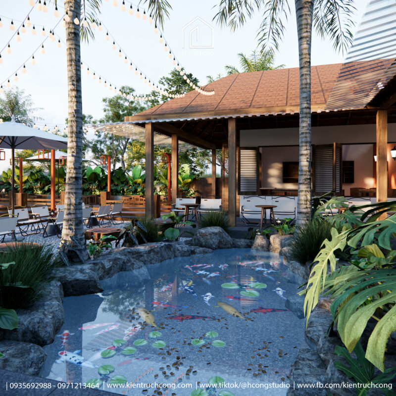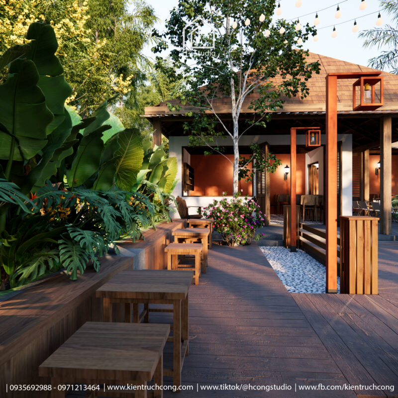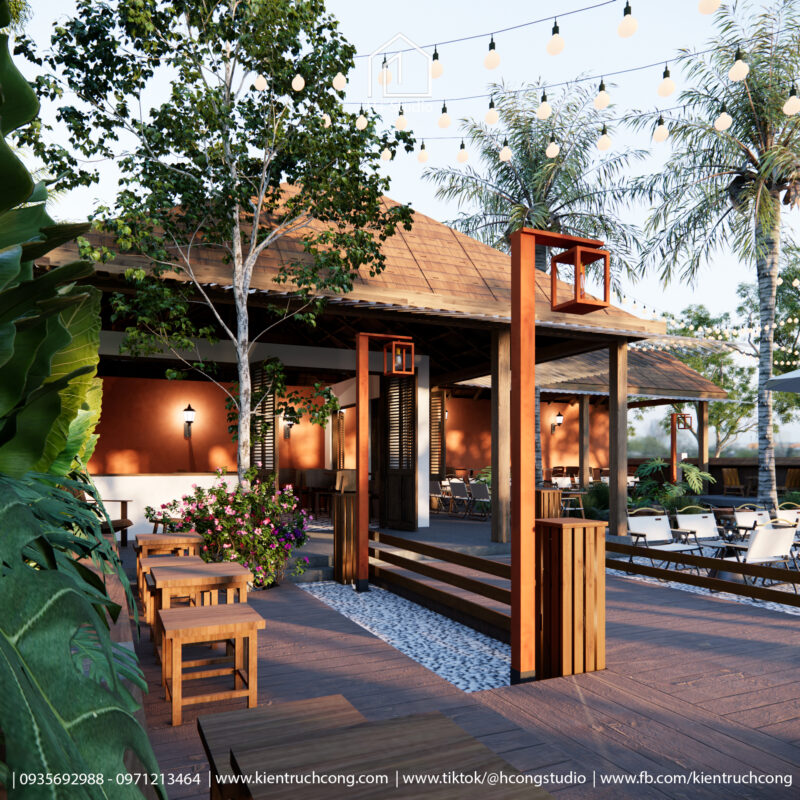 Mộng Coffee là công trình cafe sân vườn được H Cộng thiết kế và thi công tại Tiền Giang – nơi khí hậu nhiệt đới nắng ấm quanh năm, rất thích hợp cho những không gian mở nhiều cây xanh. Với cảm hứng từ kiến trúc nhà vườn Nam Bộ kết hợp lối bài trí đương đại, quán mang đến trải nghiệm gần gũi nhưng không kém phần tinh tế và chỉn chu.