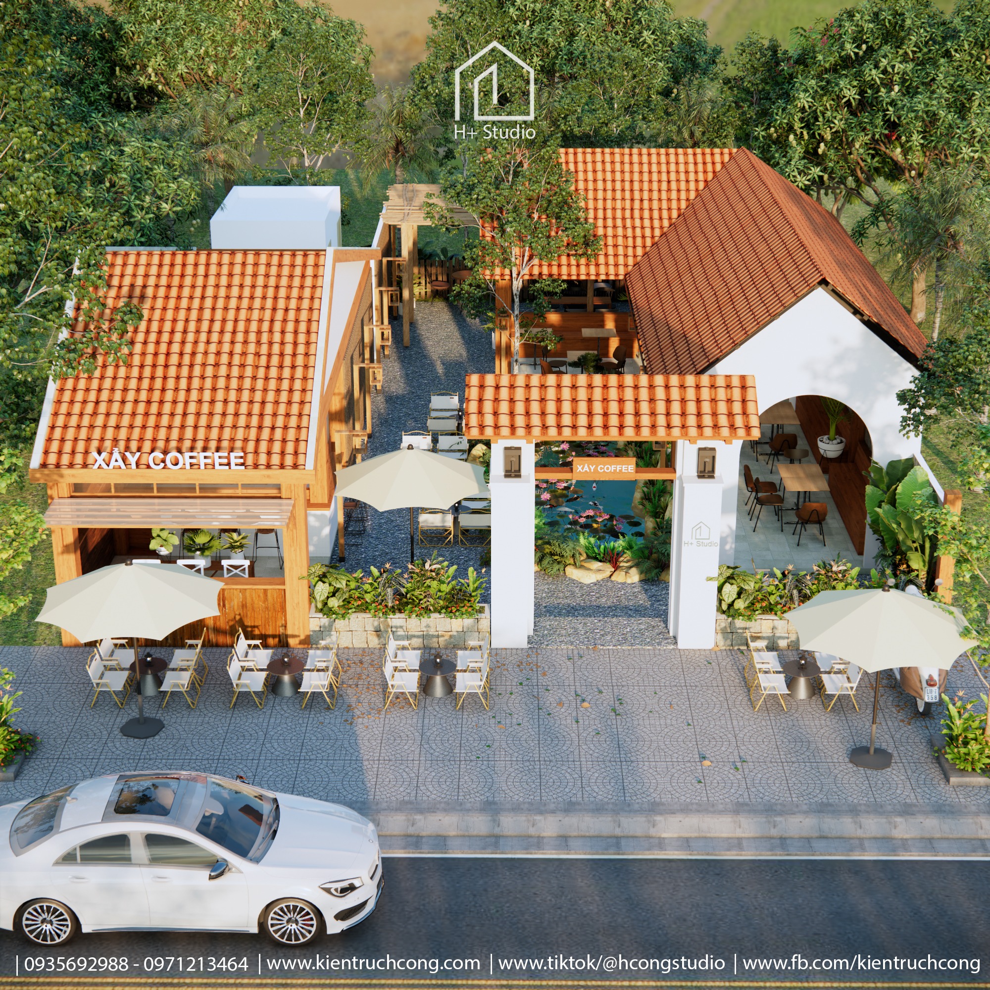 Mộng Coffee là công trình cafe sân vườn được H Cộng thiết kế và thi công tại Tiền Giang – nơi khí hậu nhiệt đới nắng ấm quanh năm, rất thích hợp cho những không gian mở nhiều cây xanh. Với cảm hứng từ kiến trúc nhà vườn Nam Bộ kết hợp lối bài trí đương đại, quán mang đến trải nghiệm gần gũi nhưng không kém phần tinh tế và chỉn chu.