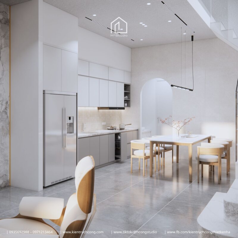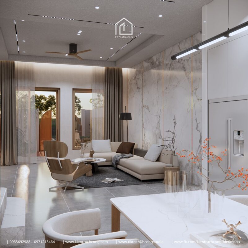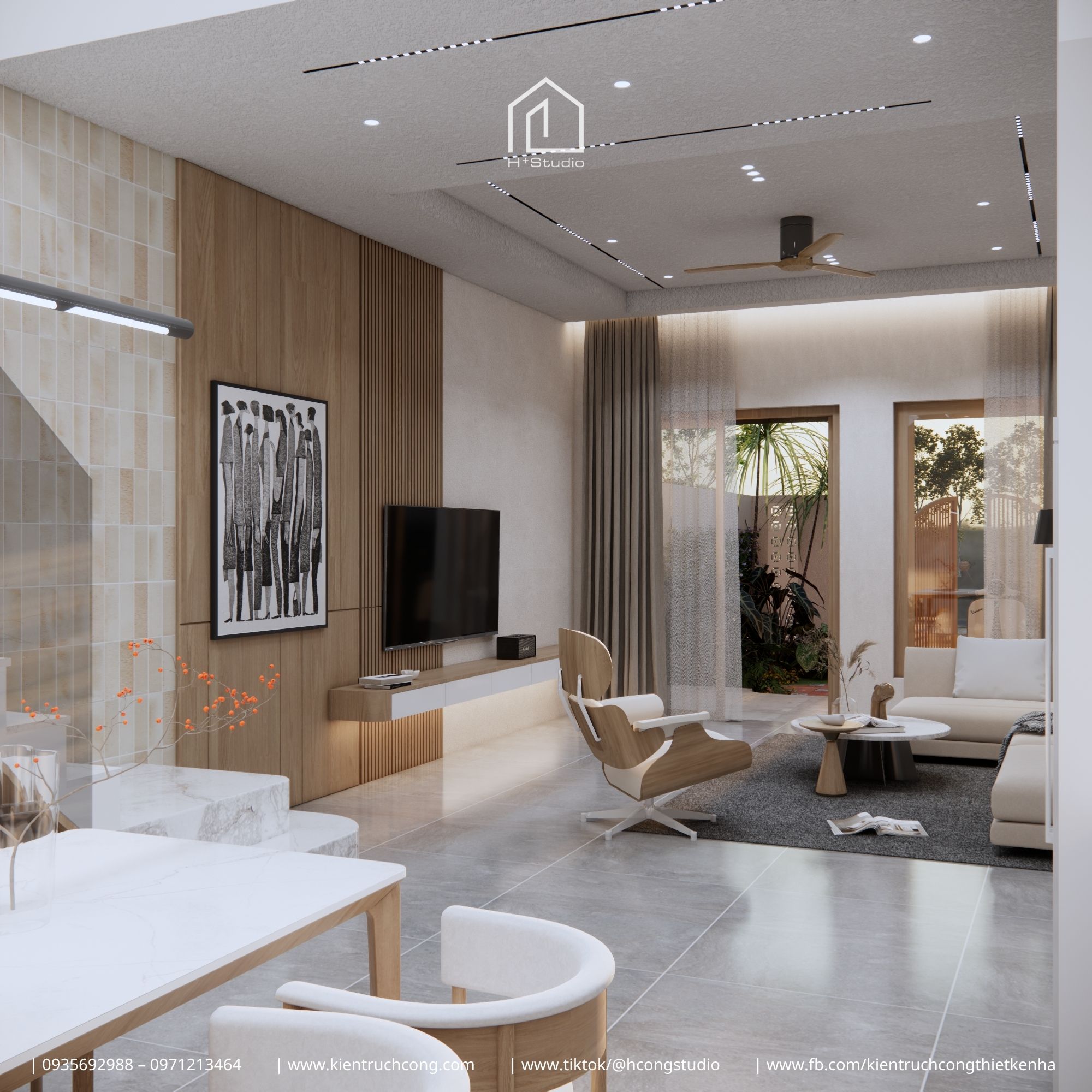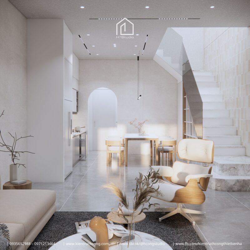 H Cộng tiếp cận công trình từ bài toán thực tế của ngôi nhà, không phải từ phong cách hay xu hướng. Với một lô đất dài và hẹp, việc không gian cuối cùng sáng, thoáng và dễ ở là kết quả của cách bố trí có chủ đích, không phải may mắn.