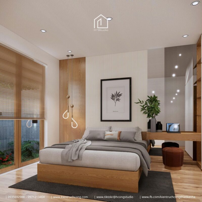 Phòng ngủ đặt ở cuối nhà là tình trạng phổ biến trong nhà phố dài. Khu vực này thường kín, ít gió, và nếu không có lối thoát khí phía sau thì dễ bị ẩm và ngột ngạt, đặc biệt vào mùa hè.