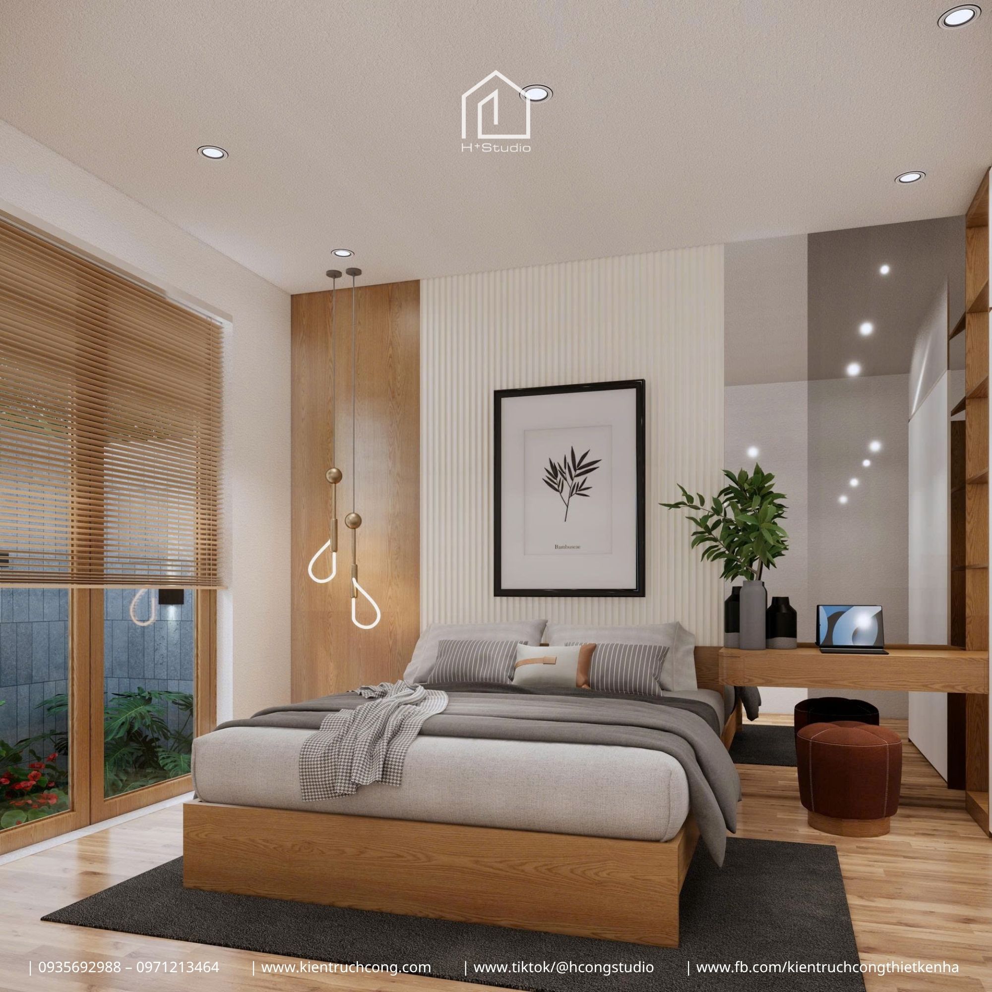 Nhờ đó phòng ngủ có ánh sáng và gió tự nhiên thay vì phụ thuộc hoàn toàn vào điều hòa và đèn. Không khí lưu thông tốt hơn giữa phòng và sân, cảm giác ẩm và bí gần như không còn. Cuối nhà từ khu vực thường bị bỏ qua trở thành một trong những không gian dễ ở nhất trong ngôi nhà.
