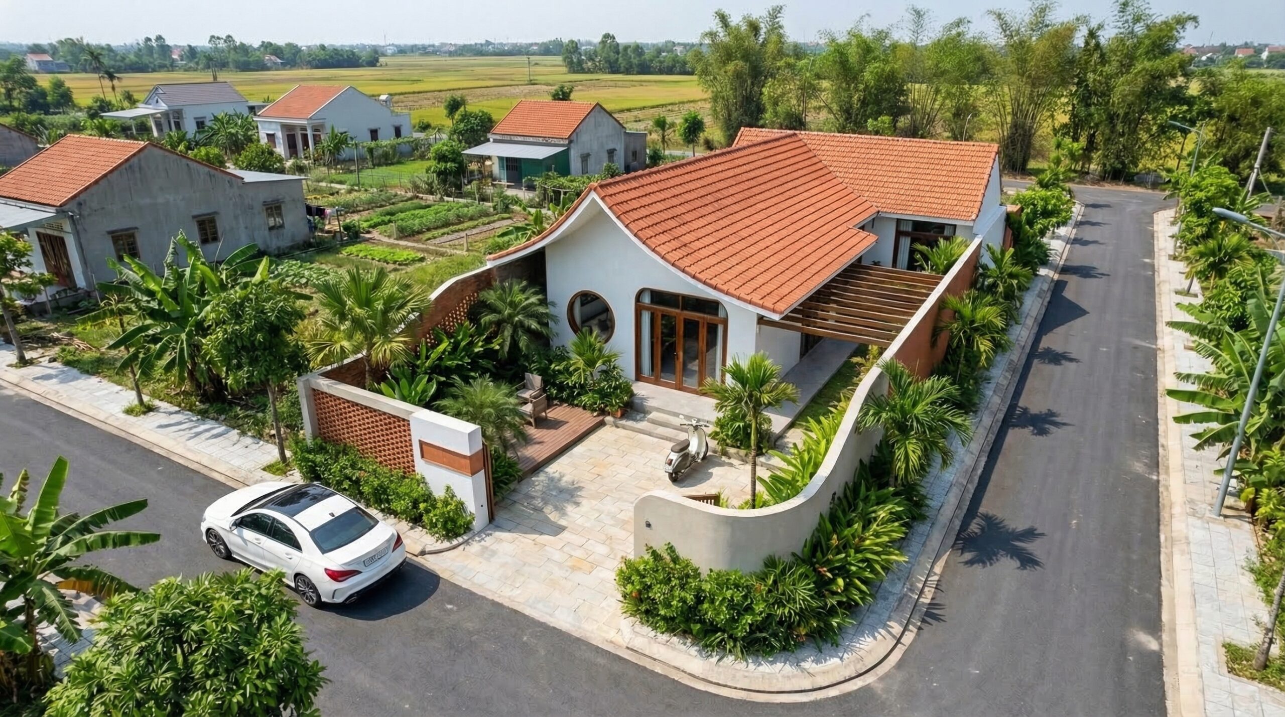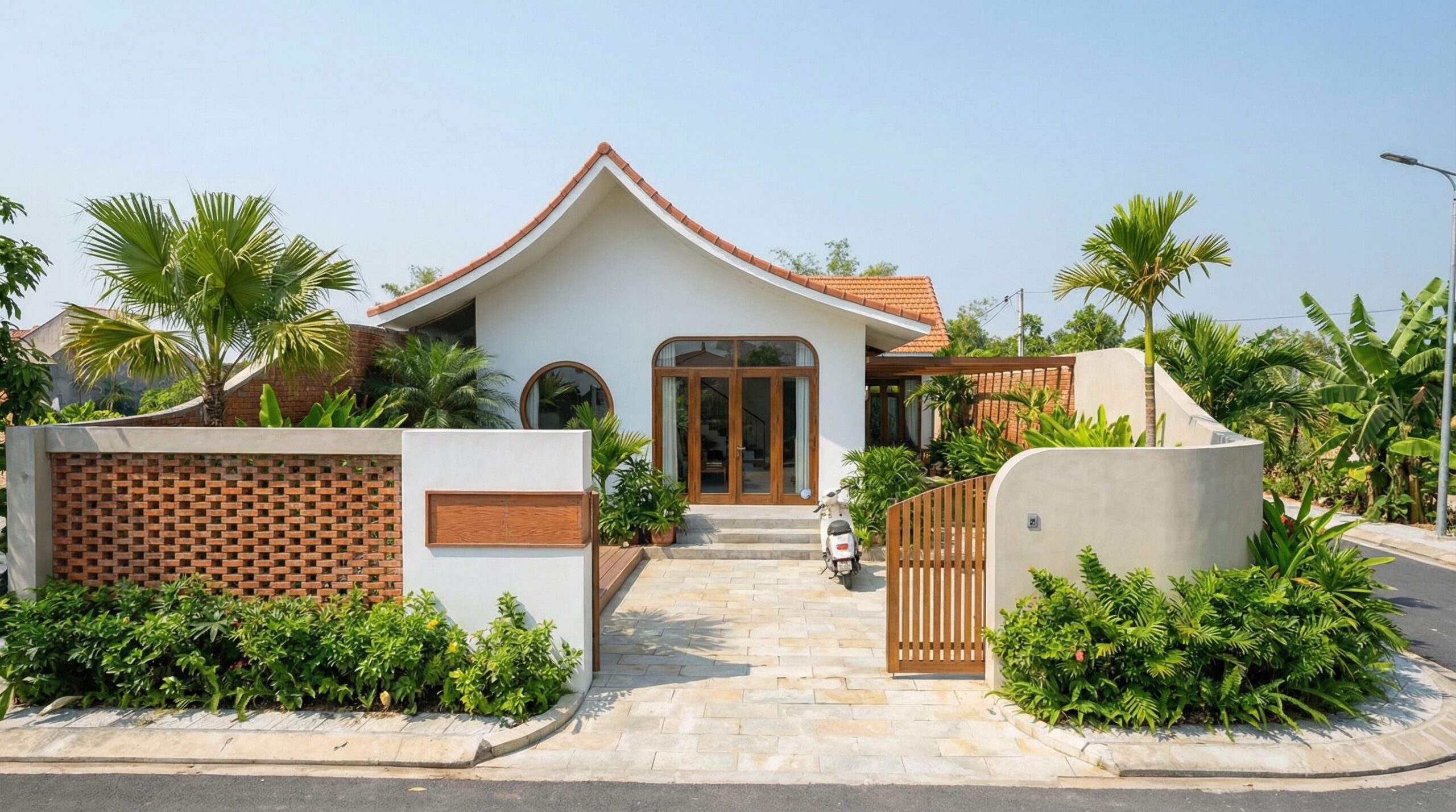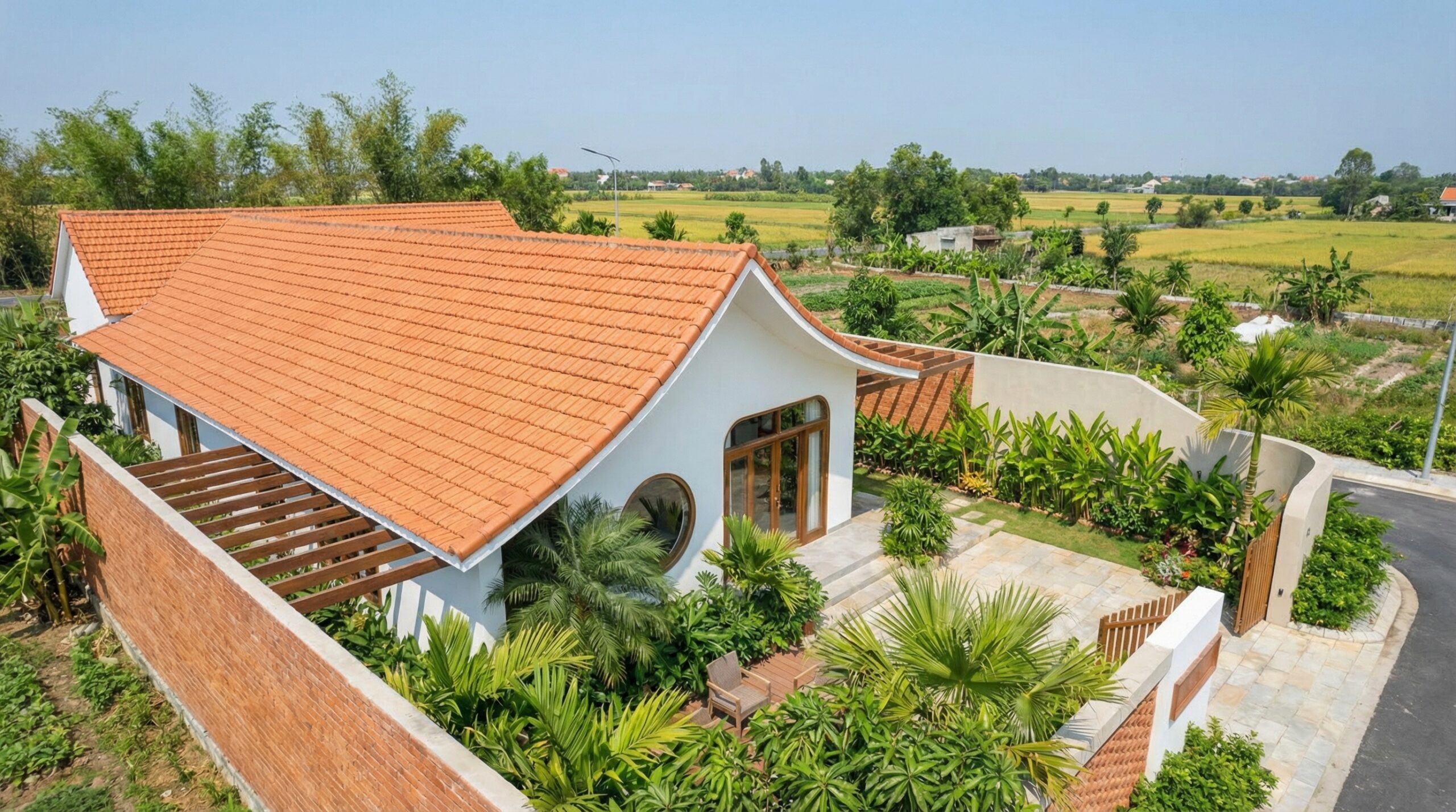 Trí House ngôi nhà vườn cấp 4 mái ngói tại Huế, nơi sân vườn, đường cong kiến trúc và không gian mở cùng tạo nên một tổng thể sống gần gũi thiên nhiên.