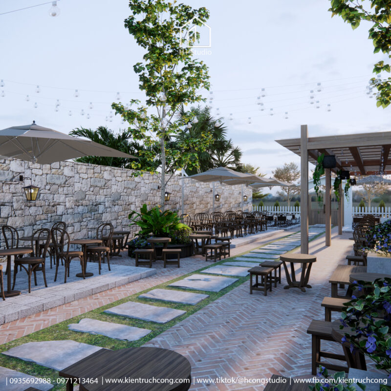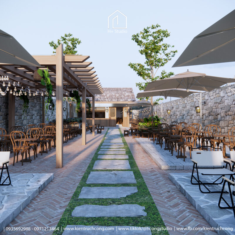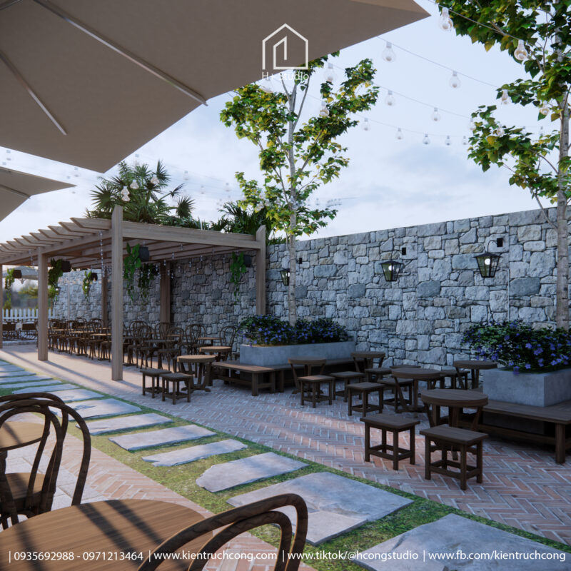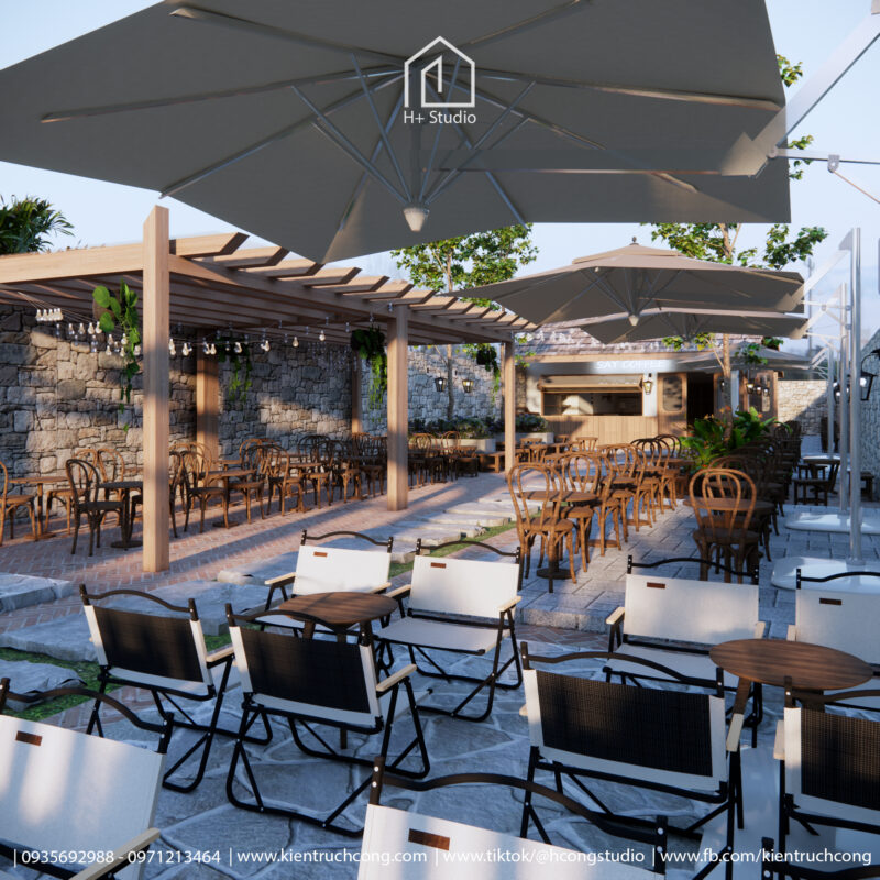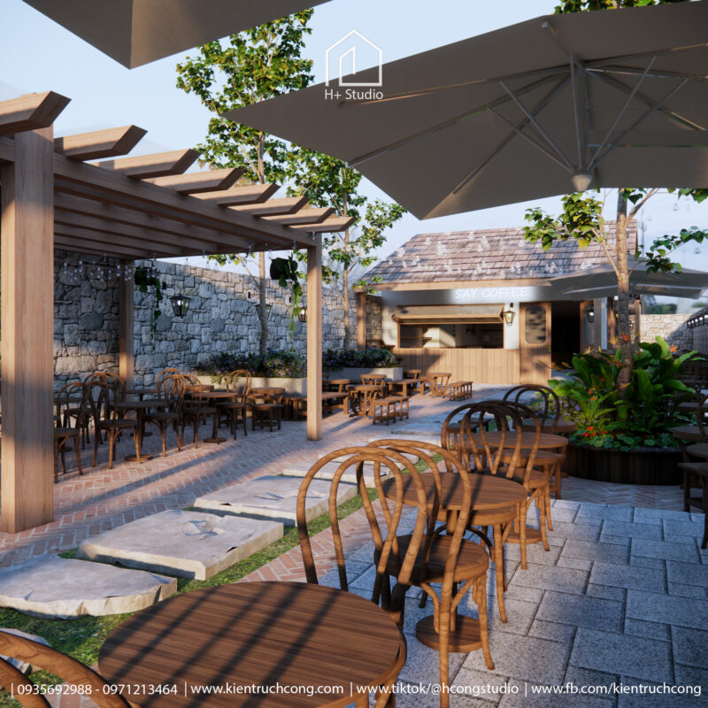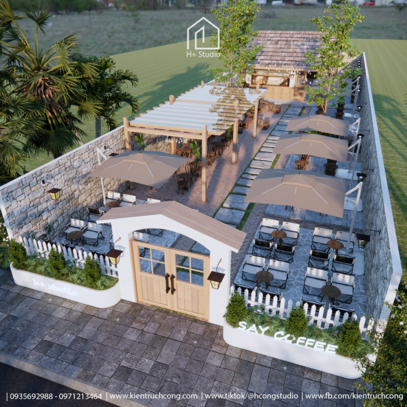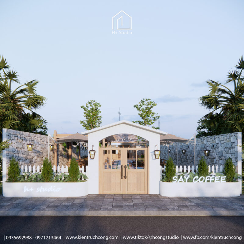 Say Coffee là công trình mới do H Cộng thiết kế & thi công, nổi bật với layout sân vườn ngoài trời thoáng đãng, mang chất mộc mạc và tự nhiên đậm chất Địa Trung Hải. Đây là mô hình quán cafe kiểu “open air” – phù hợp với khí hậu nắng nhiều, không gian rộng và đầu tư hợp lý – rất lý tưởng cho các bạn trẻ đang tìm kiếm mô hình cafe hiệu quả tại tỉnh.