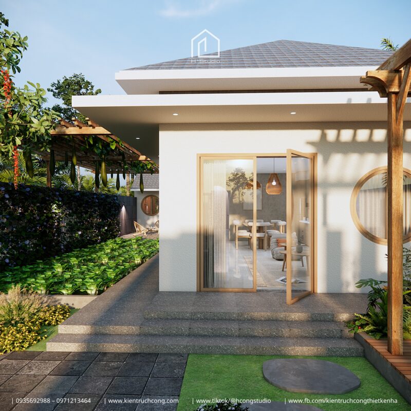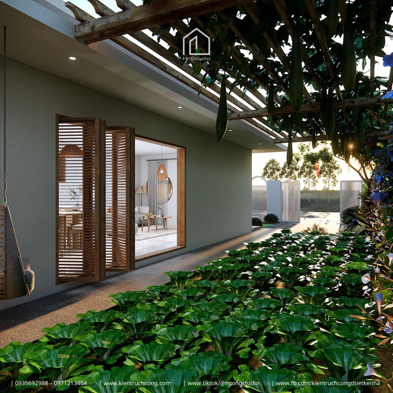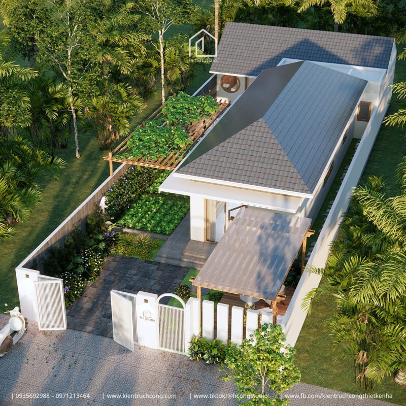 Nép mình trong khu dân cư yên tĩnh, Tín House là mẫu nhà cấp 4 hiện đại pha nét mộc mạc, mang lại cảm giác ấm cúng và gần gũi với thiên nhiên.