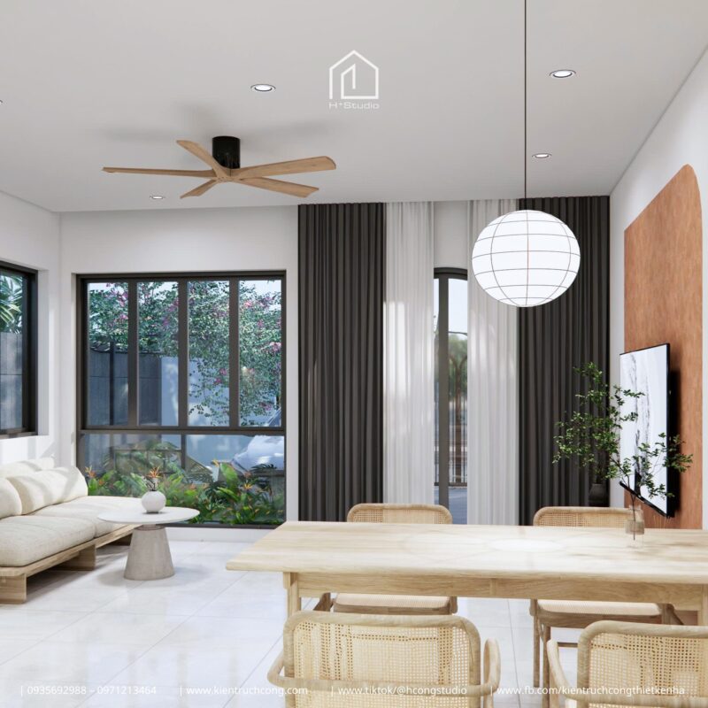 Tại đây, H Cộng không chạy theo xu hướng sang trọng cầu kỳ. Chúng tôi chọn cách làm mềm không gian bằng những khoảng hở, để nắng và gió tự viết nên bản nhạc bình yên cho mỗi ngày thức dậy.