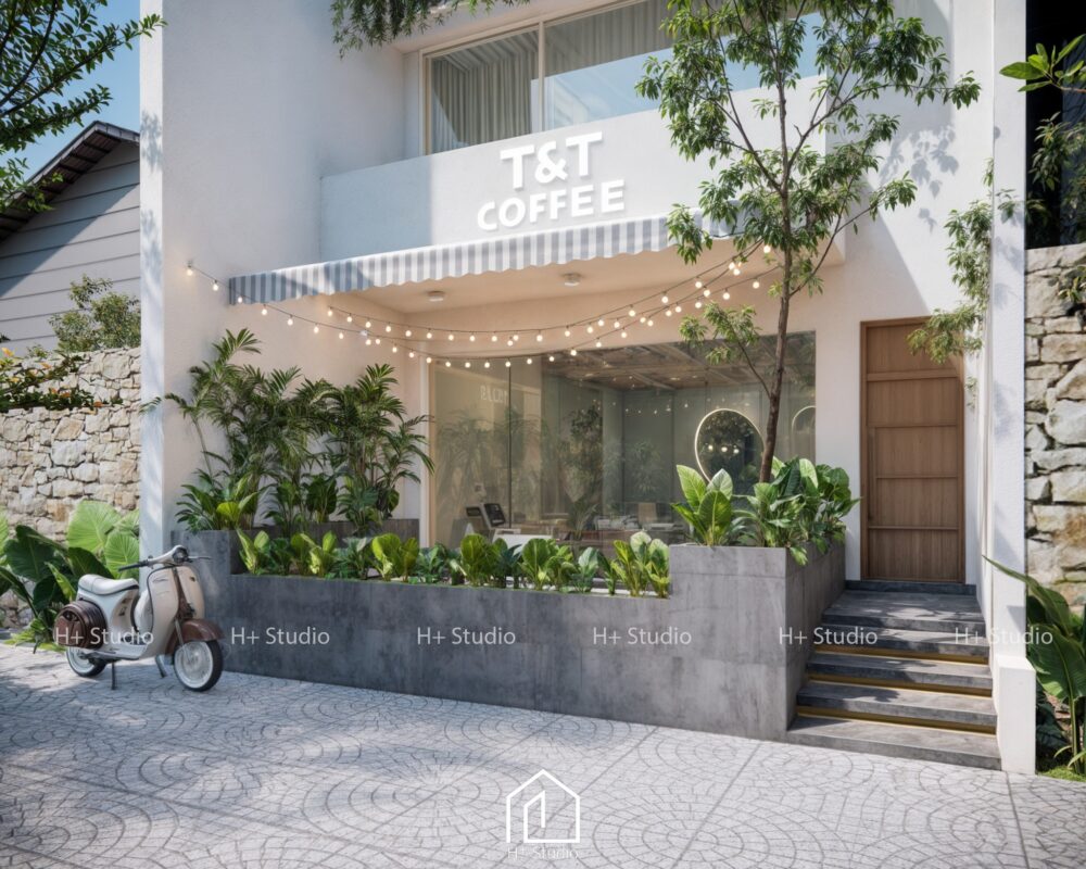 Thiết kế mới hiện đại và gần gũi với thiên nhiên. Không gian mới mang đến sự thoáng đãng và thư giãn cho khách hàng với tông màu trắng chủ đạo, kết hợp cùng cây xanh. Khu vực ngoài trời với bàn ghế, sỏi trang trí và nhiều cây xanh xung quanh, tạo nên không gian tươi mát và gần gũi với thiên nhiên. Hãy đến trải nghiệm không gian mới mẻ và thư giãn tại T&T COFFEE nhé!