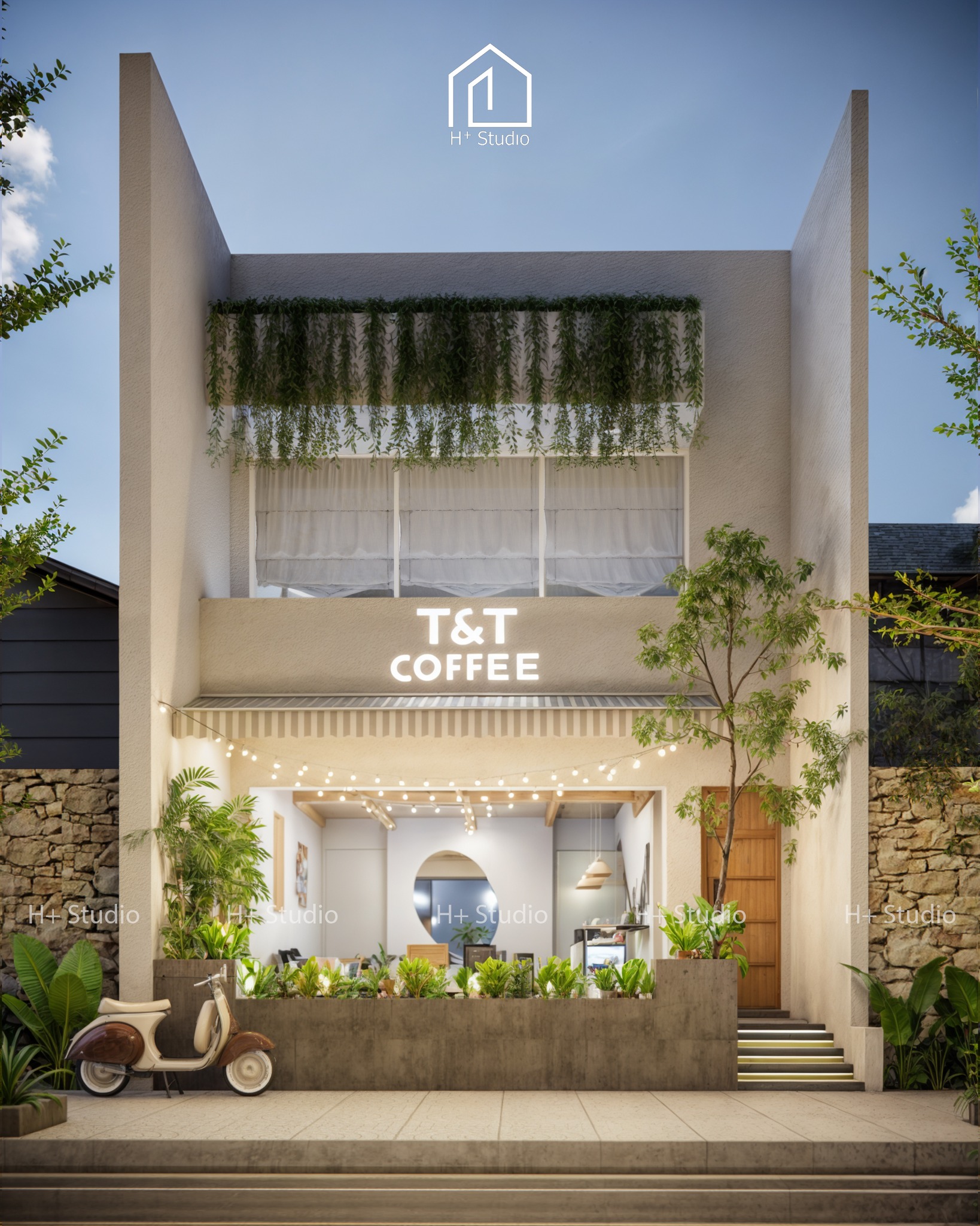 Thiết kế mới hiện đại và gần gũi với thiên nhiên. Không gian mới mang đến sự thoáng đãng và thư giãn cho khách hàng với tông màu trắng chủ đạo, kết hợp cùng cây xanh. Khu vực ngoài trời với bàn ghế, sỏi trang trí và nhiều cây xanh xung quanh, tạo nên không gian tươi mát và gần gũi với thiên nhiên. Hãy đến trải nghiệm không gian mới mẻ và thư giãn tại T&T COFFEE nhé!